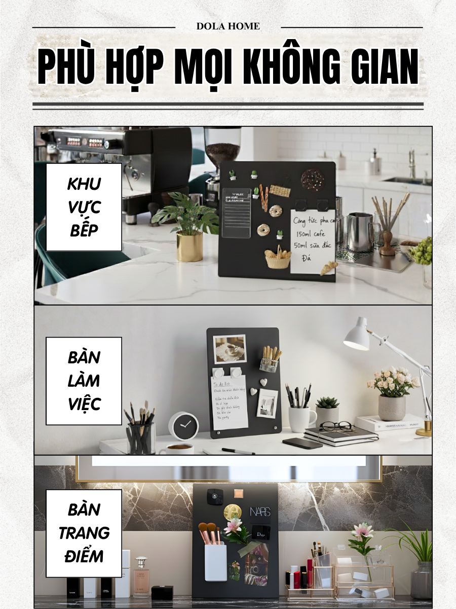 Dola Home Magnetic Board là chiếc bảng từ tính giúp bạn ghi chú, sắp xếp ý tưởng và trang trí góc làm việc/làm đẹp theo phong cách hiện đại.