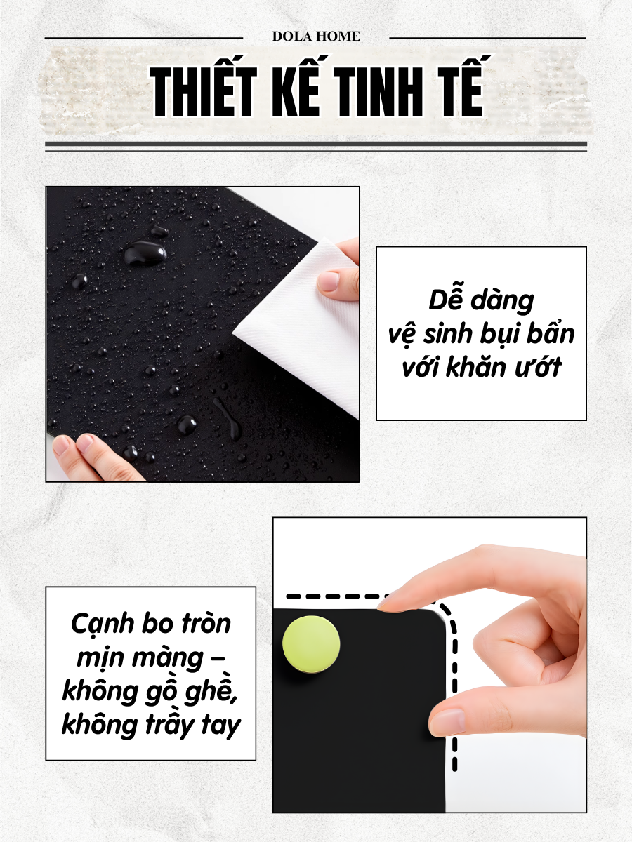 - Thiết kế tinh tế: bo tròn mềm mại, không trầy tay
