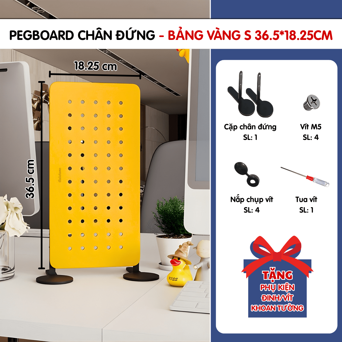 COMBO BẢNG PEGBOARD KIM LOẠI DOLA HOME CHÂN ĐỨNG SƠN TĨNH ĐIỆN CAO CẤP – BẢNG CHÂN ĐỨNG SIZE 36.5X18.25CM VÀNG