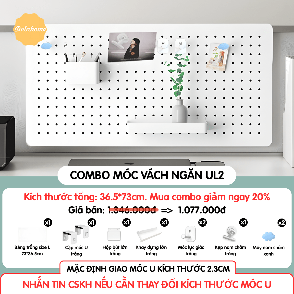 | Thương hiệu: DOLA HOME | Loại sản phẩm: Combo bảng móc vách đi kèm phụ kiện Pegboard | SKU: UL2 |