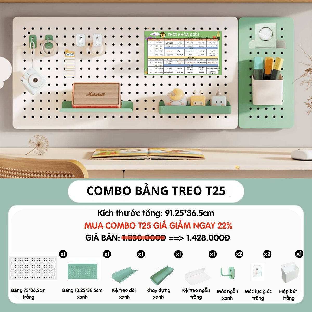| Thương hiệu: DOLA HOME | Loại sản phẩm: Combo bảng treo tường đi kèm phụ kiện Pegboard | SKU: T25 |