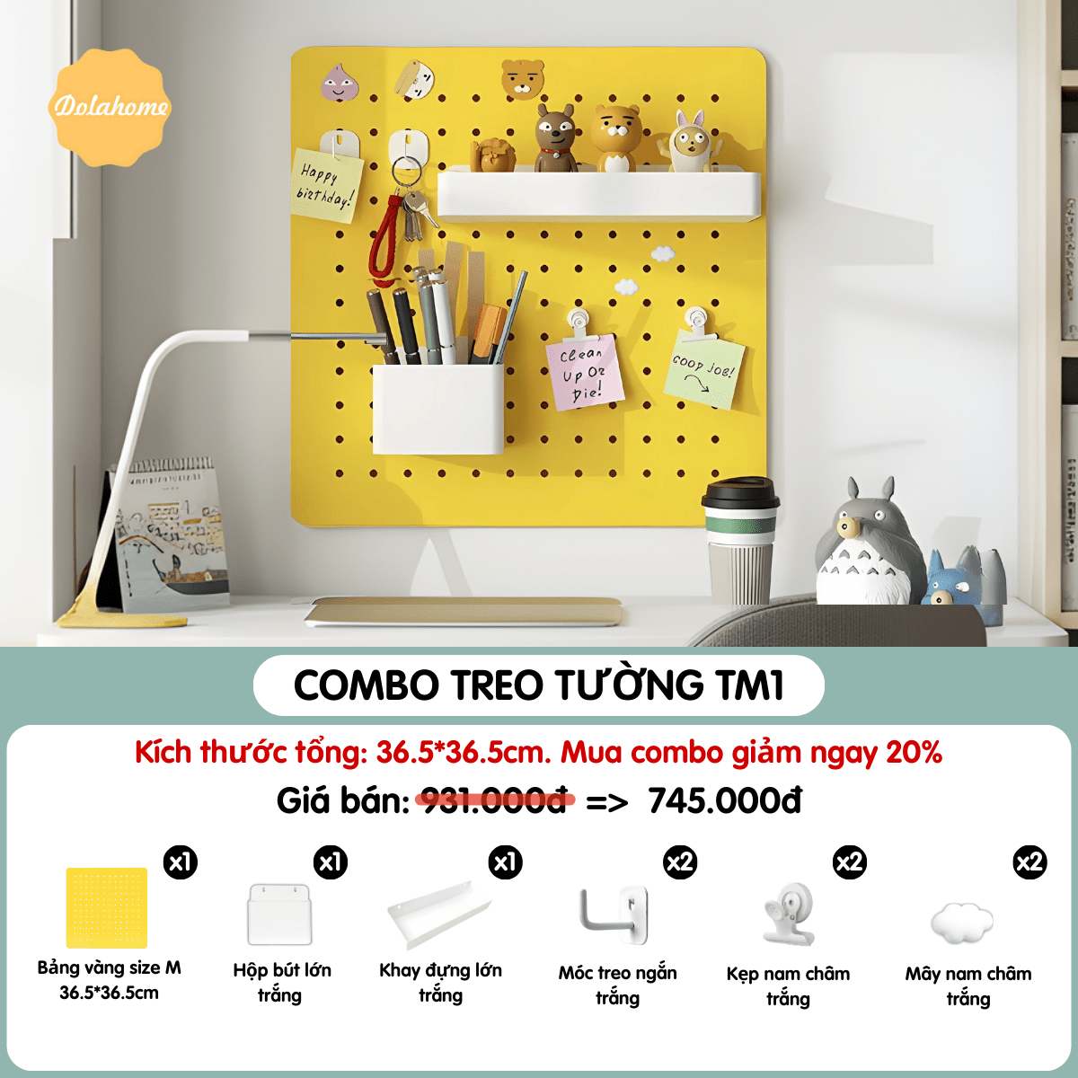 | Thương hiệu: DOLA HOME | Loại sản phẩm: Combo bảng treo tường đi kèm phụ kiện Pegboard | SKU: TM1 |