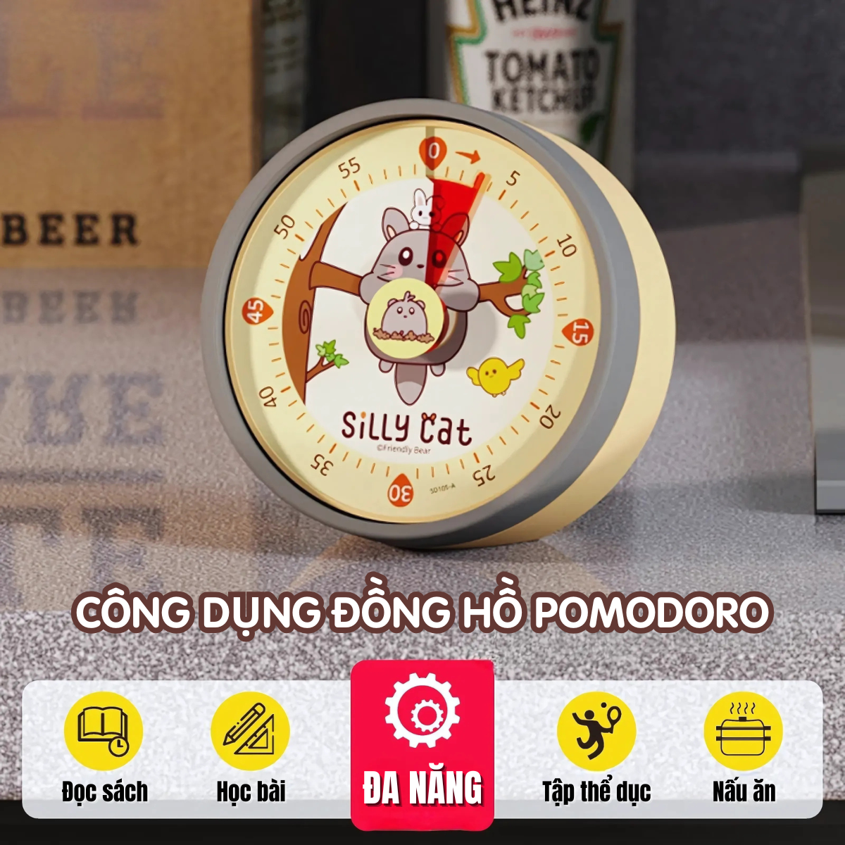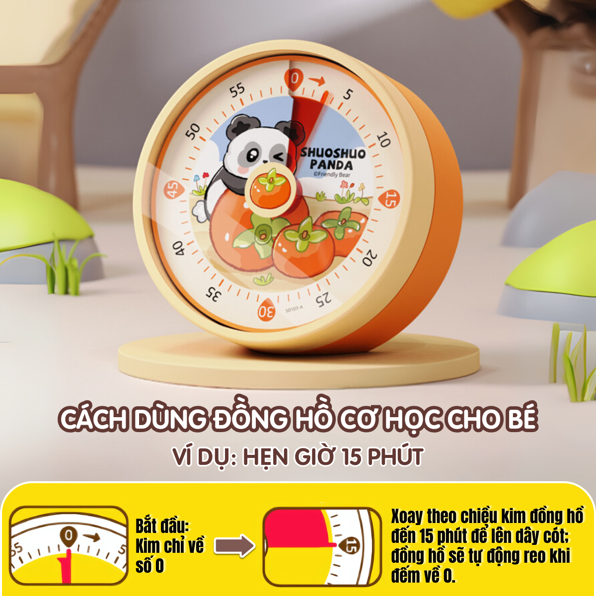 Cách sử dụng: Vặn kim theo chiều kim đồng hồđến số phút mong muốn, đồng hồ sẽ tự động đổ chuông khi về 0