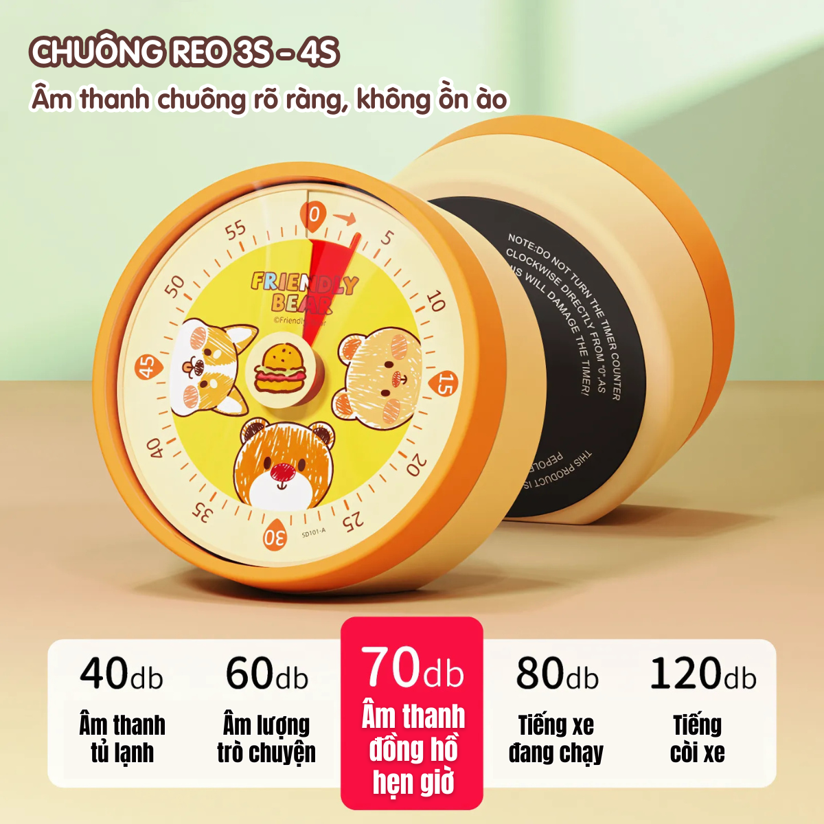 Âm thanh báo rõ ràng: chuông 70dB, nghe rõ nhưng không gây ồn ào.