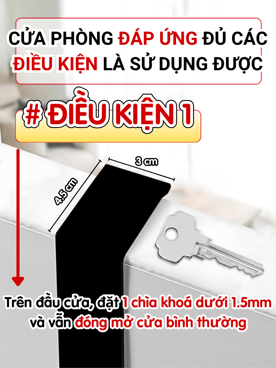 🔥 Kiểm tra KHE CỬA bằng cách sử dụng một chiếc CHÌA KHÓA, đồng xu, hoặc bất kỳ dụng cụ có ĐỘ DÀY DƯỚI 1.5MM để chắc chắn rằng cửa nhà bạn có thể sử dụng được sản phẩm.