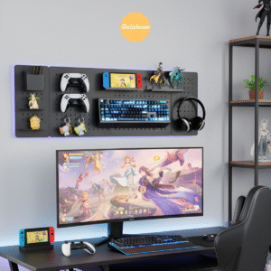 Treo tay cầm, bàn phím, figure anime. Setup góc chơi game gọn – chất – đậm cá tính