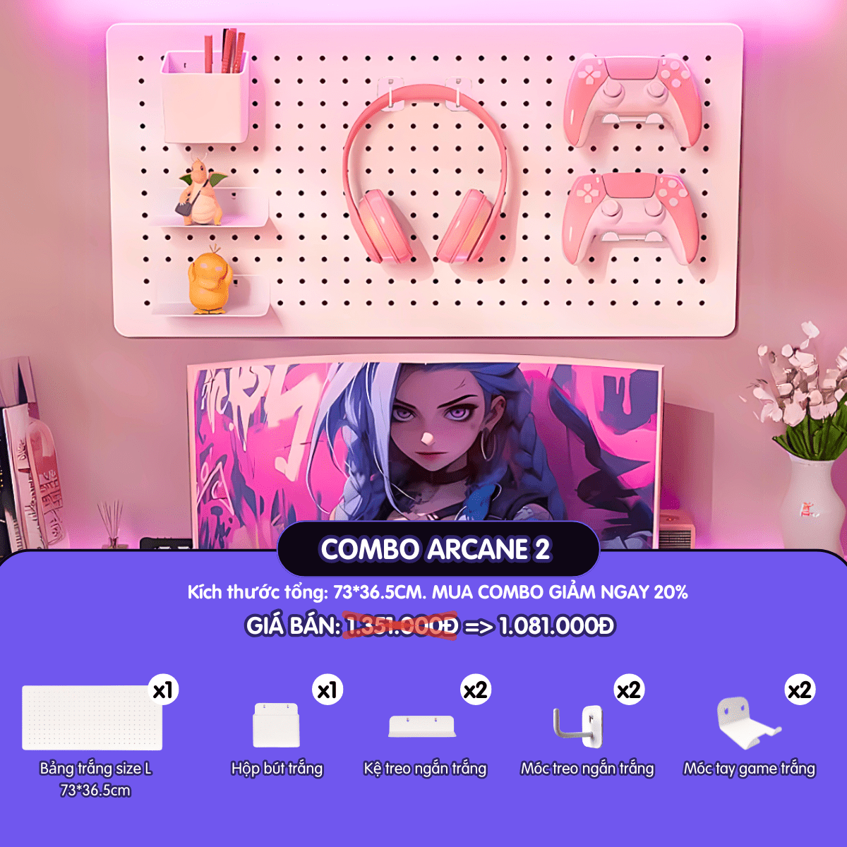 💥 Pegboard decor gaming Dola Home để bàn phím, tay cầm chơi game, mô hình anime setup bàn làm việc – ARCANE 2 💥