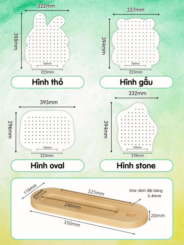 Tên sản phẩm: Pegboard khay gỗ đặt bàn – dòng học tập mini cho bé
